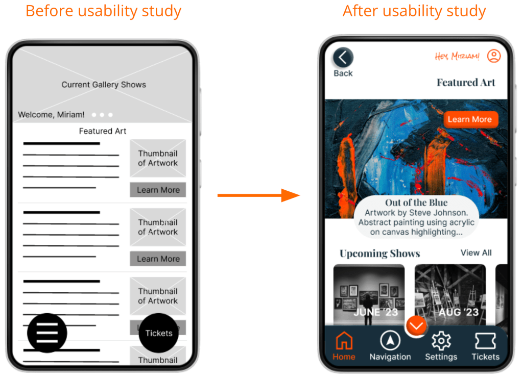 What I learned: While designing the ARTifacts audio tour app, I learned to change with the needs of the users. Throughout each stage of the design, new user needs were identified. Those needs guided me in each iteration of the design. Ultimately, producing something very different from my original idea, but creating a user focused product.